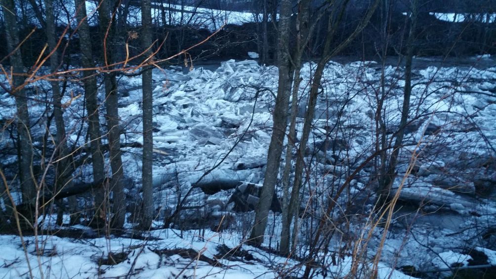 Vi er strax inne i april og isen driver og slipper taket på elva. Mandag 28.mars gikk isen fra oppi Kolbu. Det var ikke så voldsomt denne gangen som det har vært tidligere år, men noe oversvømmelse ble det allikevel. Da ismassene nådde Håjen ble det stopp. Isen pakket seg øverst i Håjen og elva tok seg nok en gang et nytt løp. Det ligger store ismasser i det opprinnelige løpet, dette førte til noe oversvømmelse oppstrøms, men denne gangen ser det ut som jordene ble skånet. Vannet står inne i kjærr og kratt. Ytterligere isgang ventes om proppen løsner, men det kan være at siden elva har tatt seg nytt løp at massene ligger på stedet hvil til de smelter. Tiden vil vise om elva går tilbake til sitt opprinnelige løp, eller om det har blitt en ny kanal ved siden av det opprinnelige.